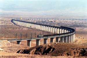 大秦铁路是一项包括600多公里铁路、晋西北地区煤炭储装运系统、秦皇岛煤码头三期工程和供电工程的系统工程。图为列车通过大秦铁路永定河大桥。